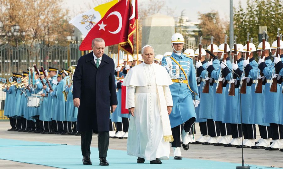 Tην ώρα που ο Πάπας Λέων ΙΔ΄ ταξίδευε από τη Ρώμη προς την Αγκυρα, ο πρέσβης των ΗΠΑ στην Αγκυρα Τομ Μπάρακ επισκεπτόταν στο Φανάρι τον Οικουμενικό Πατριάρχη Βαρθολομαίο. Αφορμή της επίσκεψης θεωρείται το ταξίδι του Πάπα και η στήριξη που προσφέρει ο Ντόναλντ Τραμπ στους θρησκευτικούς ηγέτες των δύο Εκκλησιών, οι οποίοι θα παραστούν στη Νίκαια, 1.700 χρόνια μετά. Στη συνάντηση ήταν παρόντες ο Αρχιεπίσκοπος Αμερικής Ελπιδοφόρος (δεύτερος από δεξιά) και ο Αρχιεπίσκοπος Αυστραλίας Μακάριος (δεξιά), αλλά και ο μητροπολίτης Χαλκηδόνος Εμμανουήλ (αριστερά). Παράλληλα, πληροφορίες αναφέρουν ότι συζητήθηκαν και θέματα που αφορούν το Οικουμενικό Πατριαρχείο και το ζήτημα της Θεολογικής Σχολής της Χάλκης. Μετά τη συνάντηση, ο κ. Βαρθολομαίος αναχώρησε για την Αγκυρα προκειμένου να συμμετάσχει στην εκδήλωση του προέδρου της Τουρκίας Ρετζέπ Ταγίπ Ερντογάν προς τιμήν του Πάπα.