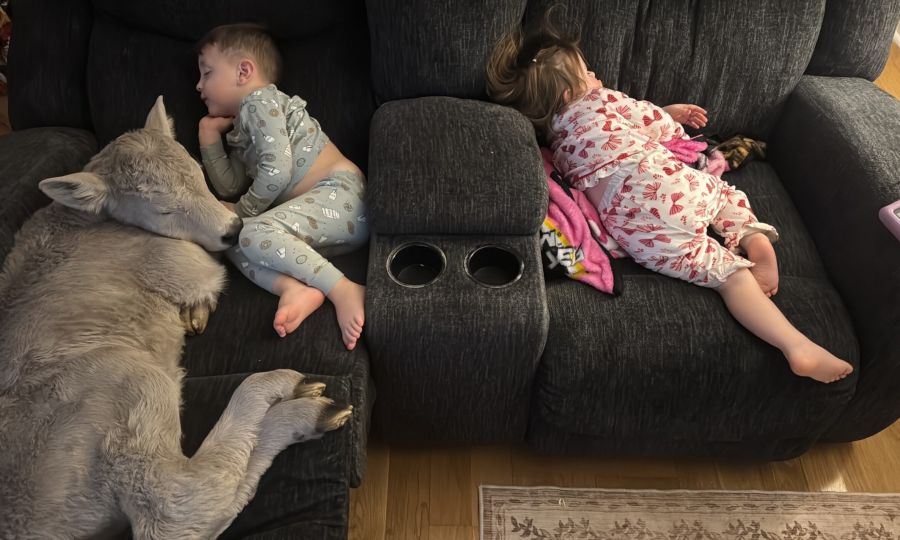 Σύντομα, το μοσχαράκι βρήκε τη θέση του στον καναπέ μαζί με τα δύο παιδιά της οικογένειας.