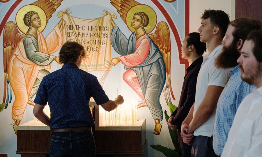 Παρέα νεαρών ορθόδοξων χριστιανών σε καφέ-βιβλιοπωλείο στο Ράλεϊ της Βόρειας Καρολίνας. Mε βάση το ερευνητικό κέντρο Pew, το 64% των πιστών της Ορθόδοξης Εκκλησίας στις ΗΠΑ είναι άνδρες, ενώ το αντίστοιχο ποσοστό το 2007 ήταν 47%. [Cornell Watson/The New York Times]