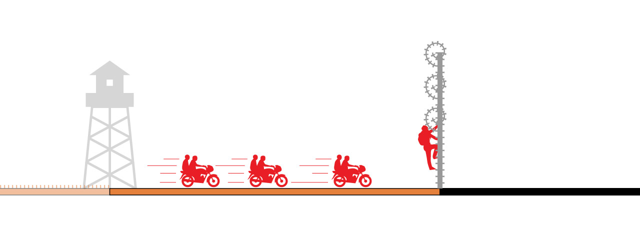 Οι μαχητές της Χάμας χρησιμοποίησαν επίσης εκρηκτικά για να ανατινάξουν τμήματα του φράγματος. Άνδρες με μοτοσικλέτες περνούσαν στη συνέχεια μέσα από τα κενά.