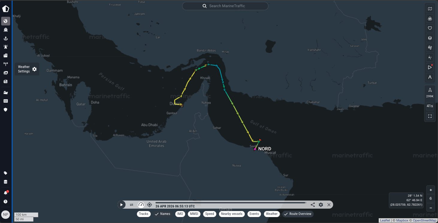 Το πολυτελές σκάφος «Nord», μήκους 142 μέτρων, το οποίο συνδέεται με τον υπό κυρώσεις Ρώσο δισεκατομμυριούχο Αλεξέι Μορντάσοφ, ταξίδεψε από το Ντουμπάι προς το Μουσκάτ του Ομάν το Σαββατοκύριακο, αποτελώντας ένα από τα λίγα ιδιωτικά σκάφη που διέπλευσαν το Στενό τους τελευταίους μήνες.