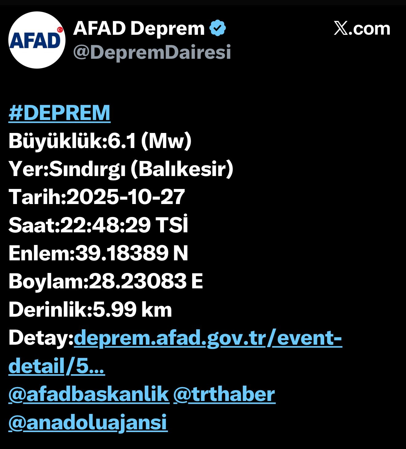 Σύμφωνα με τις πρώτες πληροφορίες, η δόνηση είχε εστιακό βάθος περίπου 6 χιλιομέτρων και έγινε αισθητή σε πολλές περιοχές, περιλαμβανομένης της Κωνσταντινούπολης και των γύρω επαρχιών.