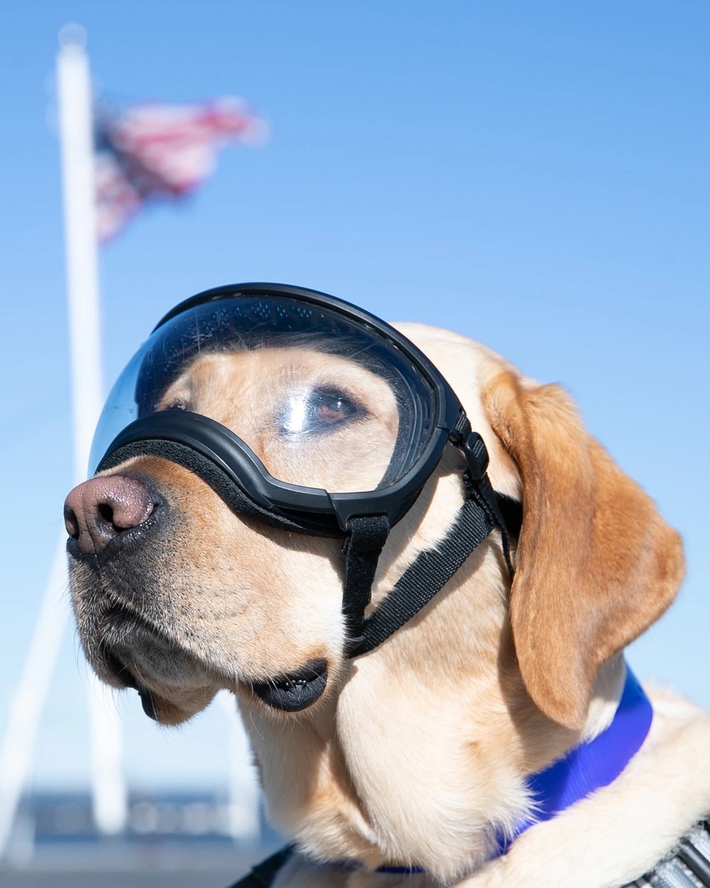 Είναι εκπαιδευμένη ώστε όταν βρίσκεται στο ιδιαίτερα δραστήριο κατάστρωμα του αεροπλανοφόρου να «ακολουθεί» τους αυστηρούς κανόνες ασφαλείας, ενώ φοράει τον κατάλληλο προστατευτικό εξοπλισμό για την όραση, την ακοή και φυσικά τις πατούσες της.