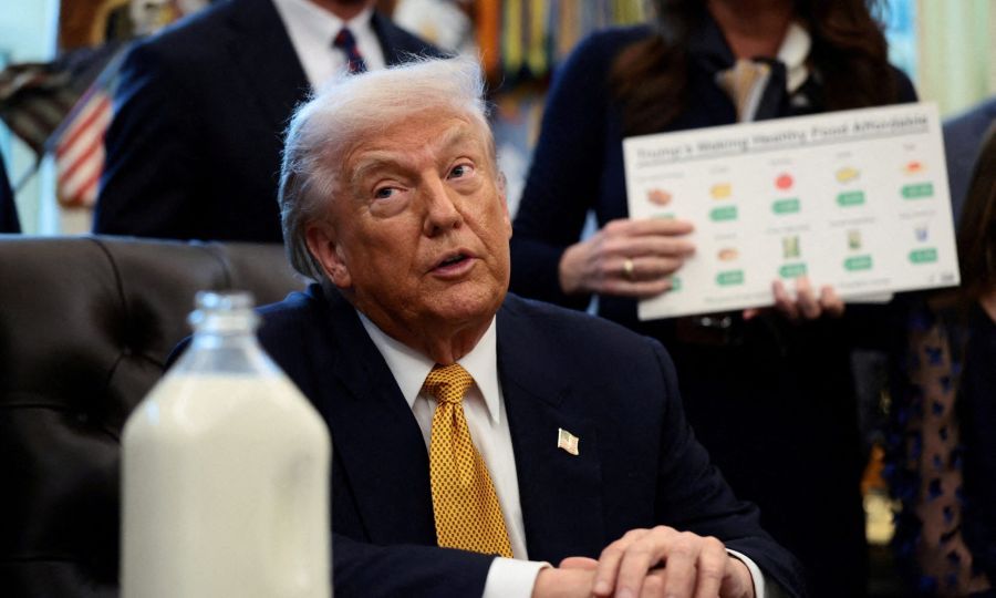 «Ολοι μοιράζονταν ένα μπουκάλι γάλα. Σήμερα, έχουμε την τάση να μην το κάνουμε. Αν θέλετε, είναι δικό σας, ημιφρέσκο — πέντε, έξι ημερών», είπε ο Αμερικανός πρόεδρος, δείχνοντας ένα μπουκάλι γάλα πάνω στο Γραφείο Αποφάσεων.