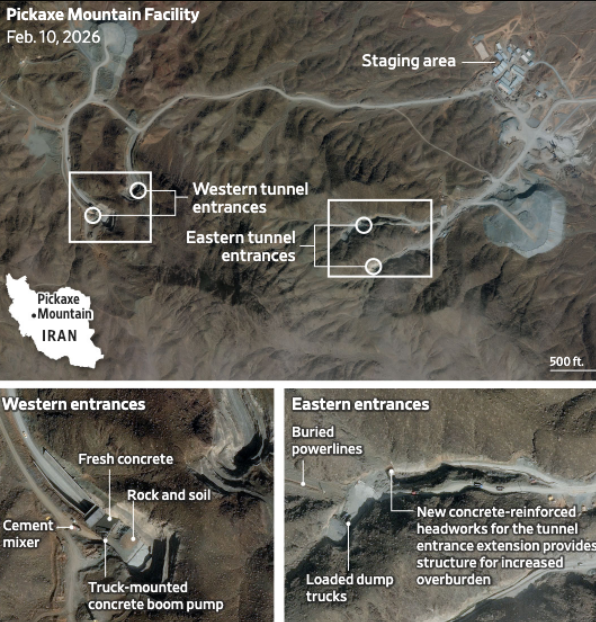 Δορυφορικές εικόνες με τη θωράκιση των εγκαταστάσεων του βουνού Πίκαξ – Φωτ.: Institute for Science and International Security / WSJ