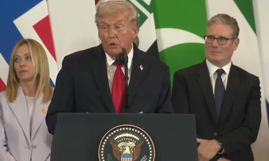 «Πού είναι το Ηνωμένο Βασίλειο;», ρώτησε ο Τραμπ, με τον Βρετανό πρωθυπουργό, Κιρ Στάρμερ, να σηκώνει το χέρι του και να απαντά «Πίσω σας, όπως συνήθως». Στη συνέχεια, πλησίασε τον Αμερικανό πρόεδρο και μετά από μια σύντομη ανταλλαγή, επέστρεψε στη θέση του.