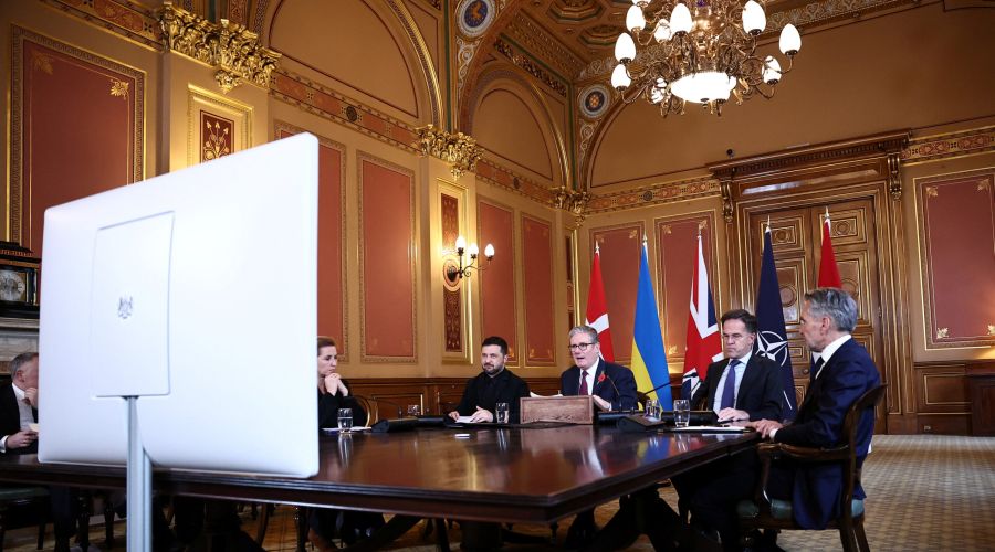 Σαφές μήνυμα ενότητας και αποφασιστικότητας απέναντι στη Ρωσία έστειλαν ο πρόεδρος της Ουκρανίας Βολοντίμιρ Ζελένσκι, ο πρωθυπουργός του Ηνωμένου Βασιλείου Κιρ Στάρμερ και ο γενικός γραμματέας του ΝΑΤΟ Μαρκ Ρούτε από το Λονδίνο, στο πλαίσιο της συνέντευξης Τύπου που ακολούθησε τη συνεδρίαση της «συμμαχίας των προθύμων».