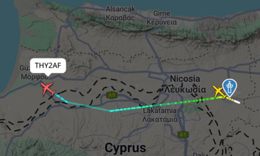 Αναστάτωση προκλήθηκε όταν αεροπλάνο των τουρκικών αερογραμμών, το οποίο απογειώθηκε από το παράνομο αεροδρόμιο της Τύμπου με προορισμό την Τουρκία, πραγματοποίησε χαμηλή πτήση πάνω από τις ελεύθερες περιοχές για αρκετά λεπτά γύρω στις 21:10, σύμφωνα με μαρτυρίες πολιτών.