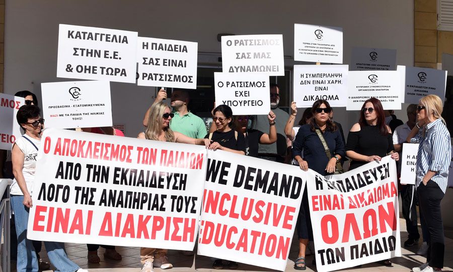 Εκδήλωση διαμαρτυρίας για τα δικαιώματα των παιδιών με αναπηρία στην εκπαίδευση, πραγματοποιήθηκε από οργανώσεις και συνδέσμους το πρωί της Δευτέρας, έξω από το προαύλιο του Υπουργείου Παιδείας, Αθλητισμού και Νεολαίας, στη Λευκωσία, με αφορμή απόφαση για παραπομπή δύο παιδιών από τις γενικές τάξεις για φοίτηση σε Ειδικές Μονάδες, που σύμφωνα με τους διοργανωτές αποτελεί κίνηση «αποκλεισμού» τους. Πάγια πολιτική του Υπουργείου Παιδείας είναι η διασφάλιση της πρόσβασης όλων των παιδιών στην εκπαίδευση, χωρίς αποκλεισμούς, ανέφερε από την πλευρά του ο Γενικός Διευθυντής του Υπουργείου, Γιώργος Παντελή.