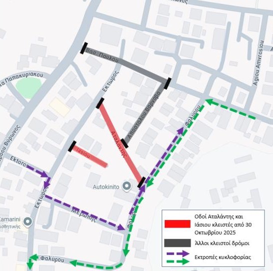 Σήμερα 30 Οκτωβρίου ξεκινούν οι εργασίες της Β’ φάσης του έργου «Κατάλληλη Κατασκευή Διαφόρων Οδών στη Λευκωσία – Συμβόλαιο 30 - Παλλουριώτισσα», η οποία περιλαμβάνει τις εργασίες στις οδούς Αταλάντης και Ιάσιου στο Δημοτικό Διαμέρισμα Λευκωσίας, που θα παραμείνουν κλειστές για την τροχαία κίνηση για χρονικό διάστημα τριών (3) μηνών, σύμφωνα με τον Δήμο Λευκωσίας.