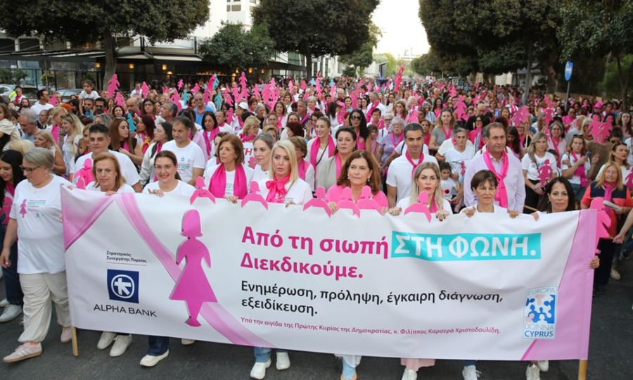 Υπό την αιγίδα της Πρώτης Κυρίας της Δημοκρατίας, κ. Φιλίππας Καρσερά-Χριστοδουλίδη, πραγματοποιήθηκε με μεγάλη επιτυχία το Σάββατο 4 Οκτωβρίου, η 21η Πορεία με τις Ροζ Φιγούρες της Europa Donna Κύπρου, η μεγαλύτερη εκδήλωση συμπαράστασης στα άτομα με εμπειρία καρκίνου του μαστού και γυναικολογικού καρκίνου.