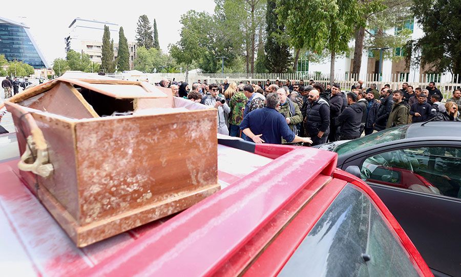 Στην οροφή του πρώτου οχήματος της αυτοκινητοπομπής που ξεκίνησε από το νέο ΓΣΠ κι έφτασε στο Προεδρικό με ισχυρή συνοδεία αστυνομίας, οι κτηνοτρόφοι τοποθέτησαν το μαύρο φέρετρο. Υπόμνημα με τις θέσεις των διαμαρτυρομένων επιδόθηκε αργότερα από τριμελή αντιπροσωπεία τους στο προαύλιο του Προεδρικού στον Γενικό Διευθυντή του Υπουργείου Γεωργίας, Ανδρέα Γρηγορίου.