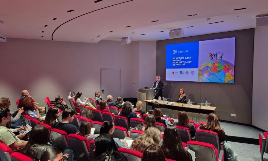 Με επιτυχία ολοκληρώθηκε την Τρίτη 25 Νοεμβρίου 2025 η εκδήλωση που πραγματοποιήθηκε στο αμφιθέατρο UNESCO του Πανεπιστημίου Λευκωσίας, στο πλαίσιο των εορτασμών για τα 20χρονα της Έδρας UNESCO. Κατά τη διάρκεια της εκδήλωσης παρουσιάστηκε ο επετειακός τόμος με τίτλο «20 Χρόνια Έδρα UNESCO: Πολιτισμική Ετερότητα και Διαπολιτισμικός Διάλογος για έναν Πολιτισμό Ειρήνης», καθώς και ο συλλογικός τόμος «Δεν ξεχνώ την Κύπρο…», τον οποίο επιμελήθηκαν ο Δρ. Κώστας Κατσώνης και η Καθηγήτρια του Πανεπιστημίου Θεσσαλίας Τασούλα Τσιλιμένη. Την εκδήλωση διοργάνωσε η Έδρα UNESCO του Πανεπιστημίου Λευκωσίας σε συνεργασία με τον Κυπριακό Σύνδεσμο Παιδικού Νεανικού Βιβλίου και την Ένωση Λογοτεχνών Κύπρου.