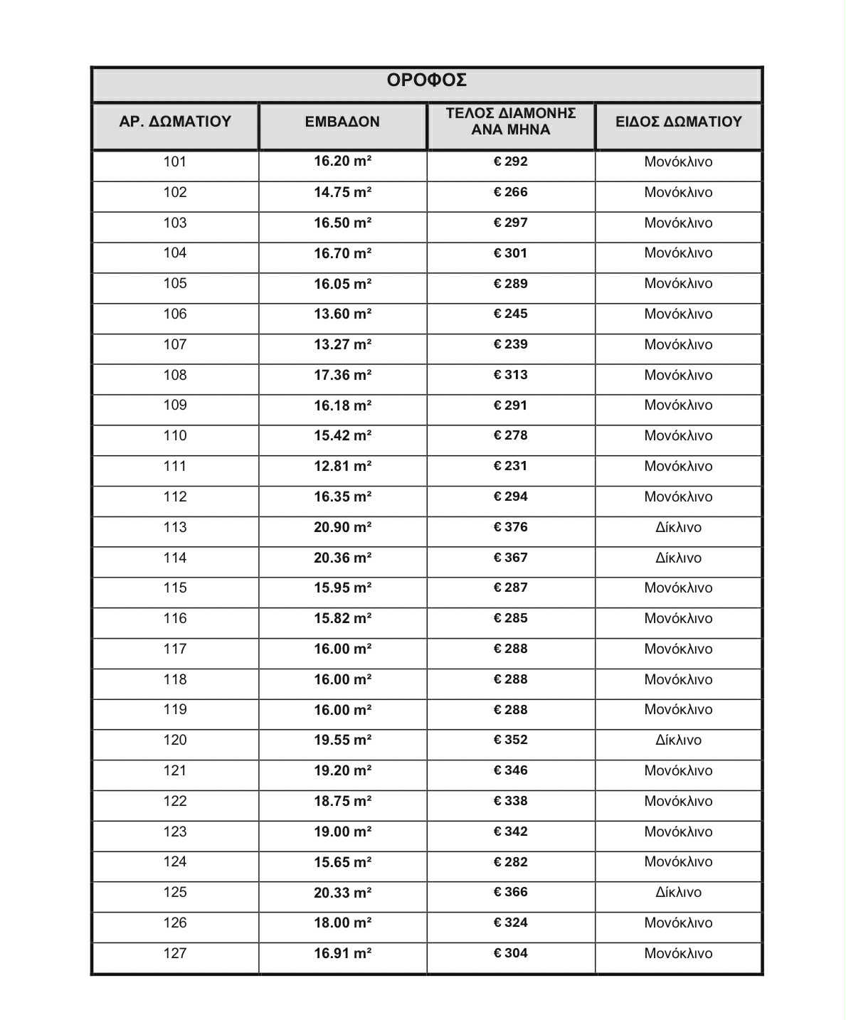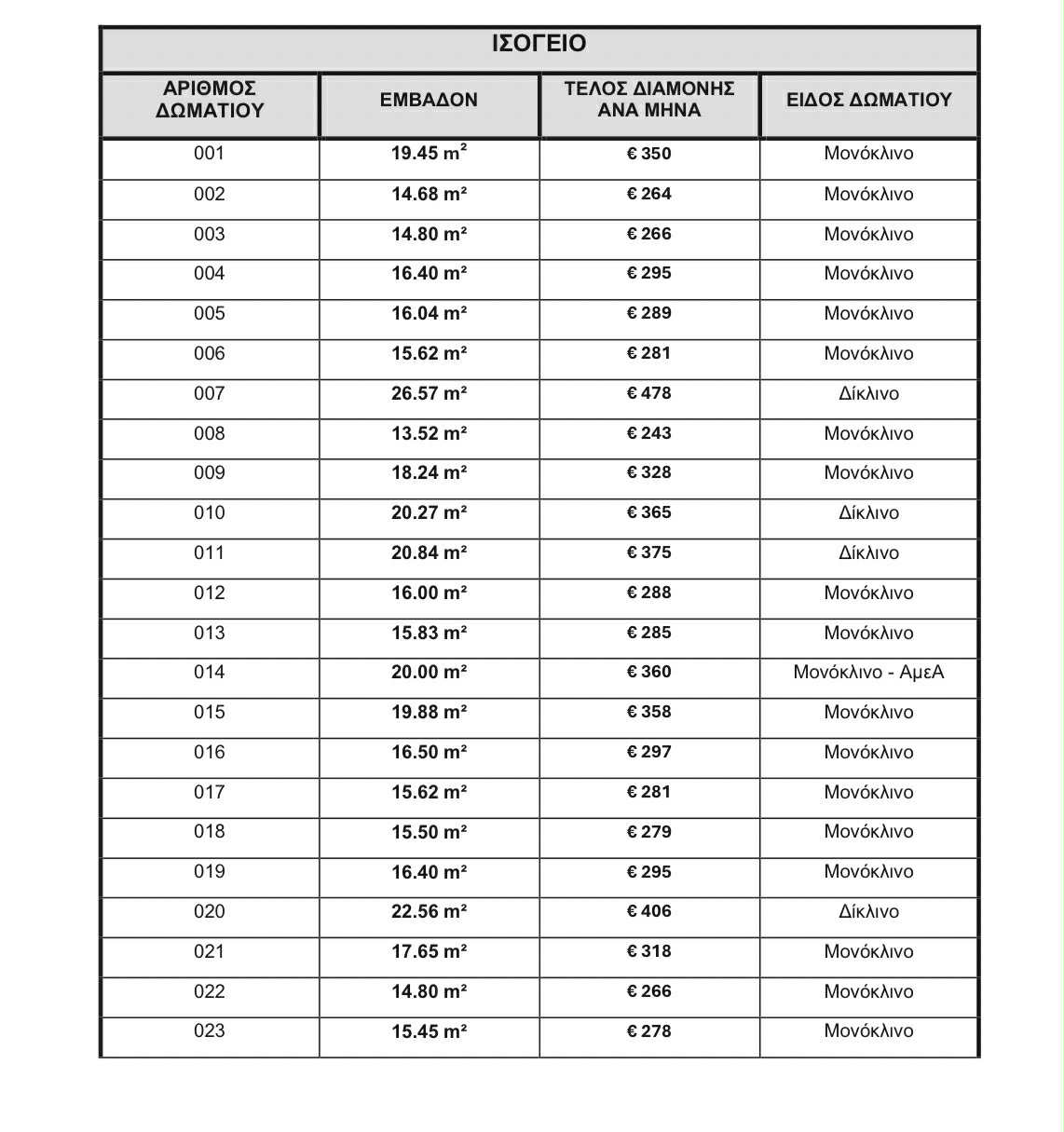 Σε σχέση με το μηνιαίο ενοίκιο, αυτό κυμαίνεται ανάμεσα στα 243 ευρώ και 406 ευρώ, ανάλογα με το μέγεθος του δωματίου, είτε μονόκλινο είτε δίκλινο.