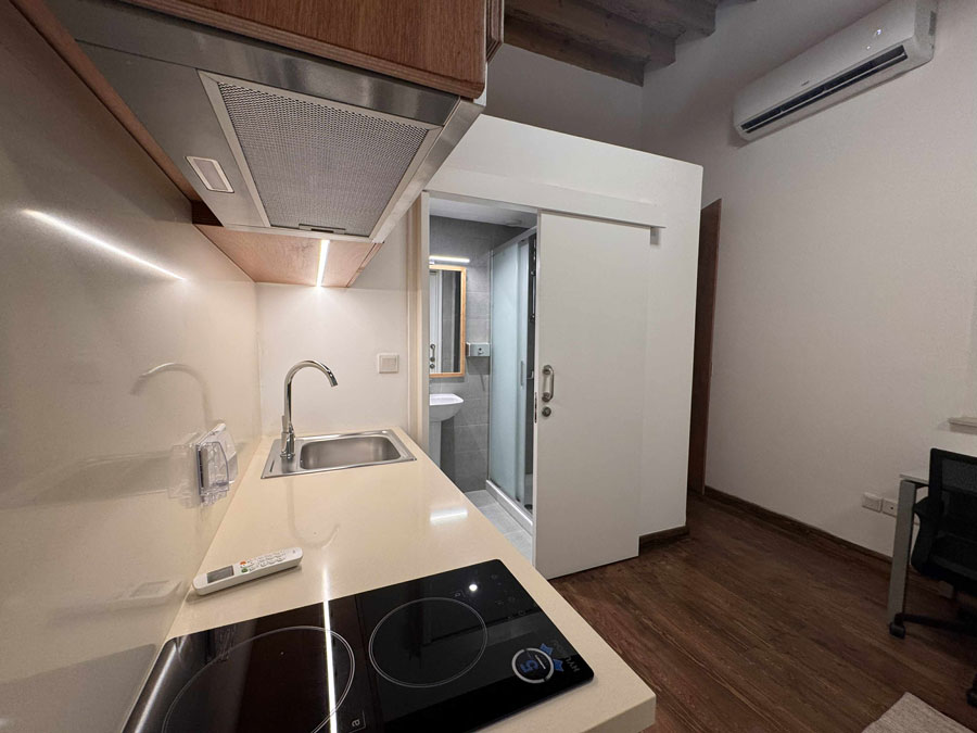 Πιο συγκεκριμένα, κάθε δωμάτιο είναι αυτόνομο και πλήρως επιπλωμένο, περιλαμβάνοντας γραφείο, καρέκλα γραφείου, ραφιέρα, κρεβάτι με συρτάρι και στρώμα πλάτους 90 εκ., κομοδίνο και ντουλάπι τοίχου στο μπάνιο. Διαθέτει επίσης ατομικό χώρο υγιεινής και πλήρως εξοπλισμένη κουζίνα. Επιπλέον, κάθε δωμάτιο διαθέτει κλιματιστικό θέρμανσης/ψύξης.