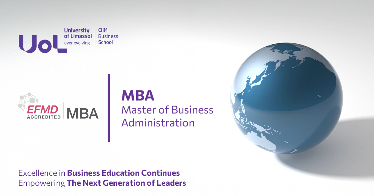 Το MBA του Πανεπιστημίου Λεμεσού (UoL) εντάσσεται στην ελίτ των μόλις 111 EFMD πιστοποιημένων προγραμμάτων, ενισχύοντας τη θέση του ανάμεσα στα κορυφαία ευρωπαϊκά ιδρύματα που προσφέρουν αριστεία στην εκπαίδευση MBA! Αυτή η ανανέωση επιβεβαιώνει τη δέσμευση του προγράμματος στην παροχή επιχειρηματικής εκπαίδευσης παγκόσμιας κλάσης, η οποία πληροί τα υψηλότερα διεθνή πρότυπα.