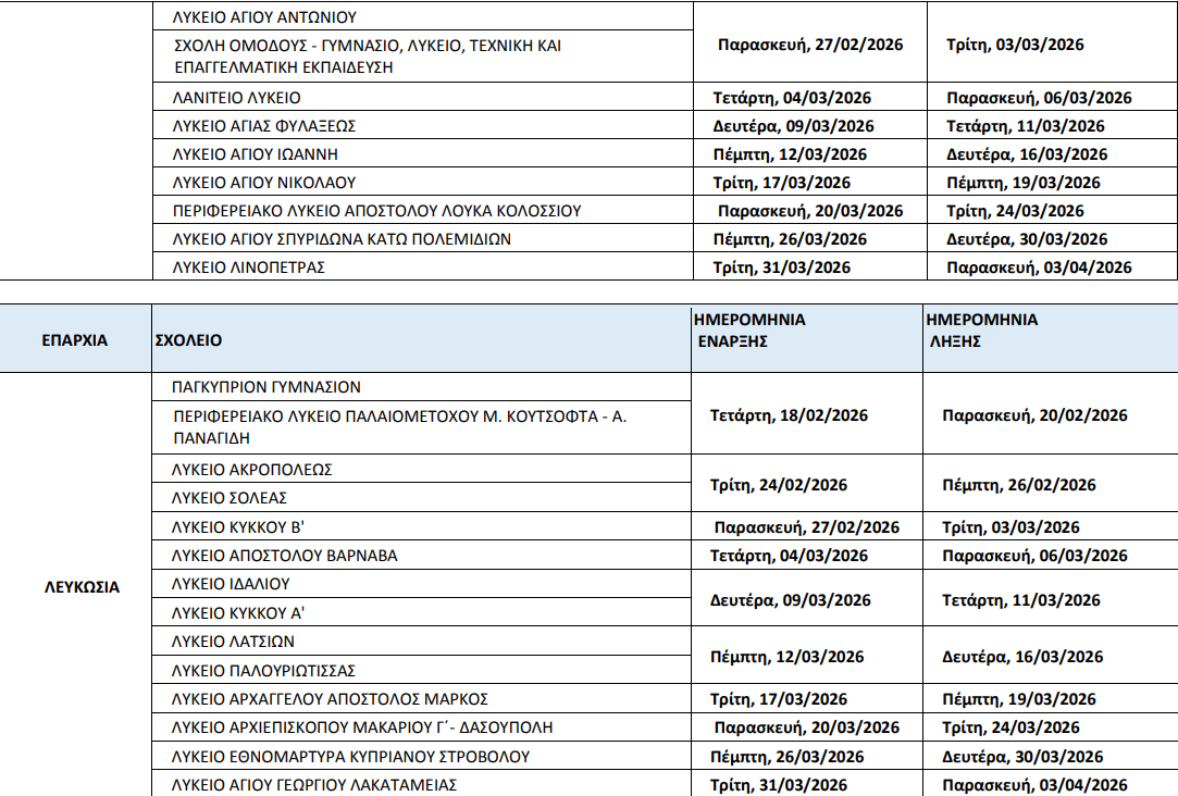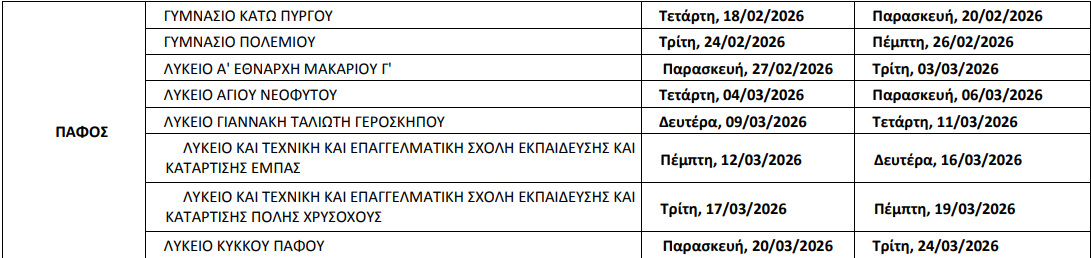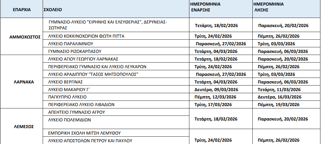 Αναλυτικά το κυλιόμενο πρόγραμμα ανά Επαρχία
