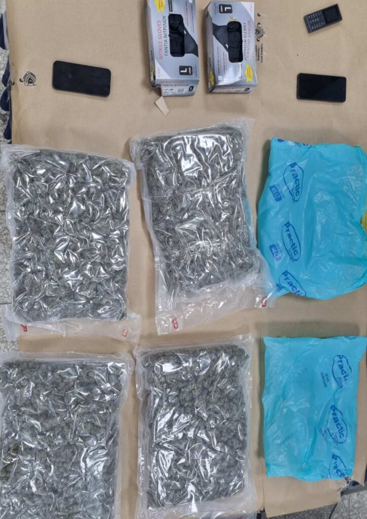 Το αυτοκίνητο του 26χρονου ανακόπηκε από μέλη της Αστυνομίας όπου μετά από έρευνα που διενεργήθηκε, εντοπίστηκαν τα δύο νάιλον σακούλια τα οποία από έλεγχο διαπιστώθηκε ότι περιείχαν κάνναβη συνολικού βάρους τεσσάρων κιλών και 520 γραμμαρίων περίπου. Ο 26χρονος συνελήφθη για αυτόφωτο αδίκημα ενώ από περαιτέρω έρευνα που διενεργήθηκε στο αυτοκίνητο του, εντοπίστηκε και παραλήφθηκε ένα κινητό τηλέφωνο καθώς και δύο κουτιά τα οποία περιείχαν γάντια μίας χρήσης.
