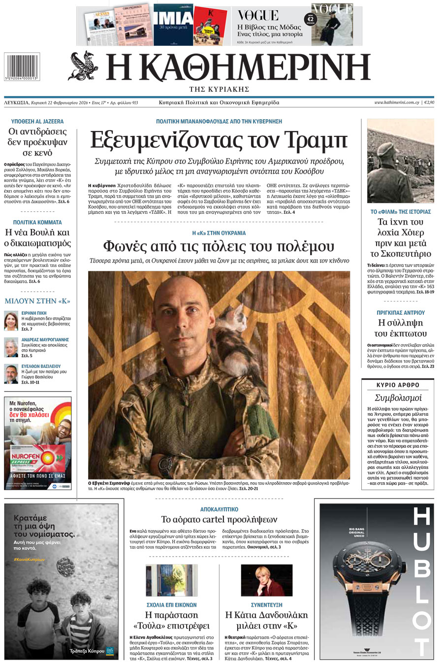 Διαβάστε αυτή την Κυριακή αποκλειστικά στην «Καθημερινή». Η Συμμετοχή της Κύπρου στο Συμβούλιο Ειρήνης του Αμερικανού προέδρου, και τι σημαίνει.