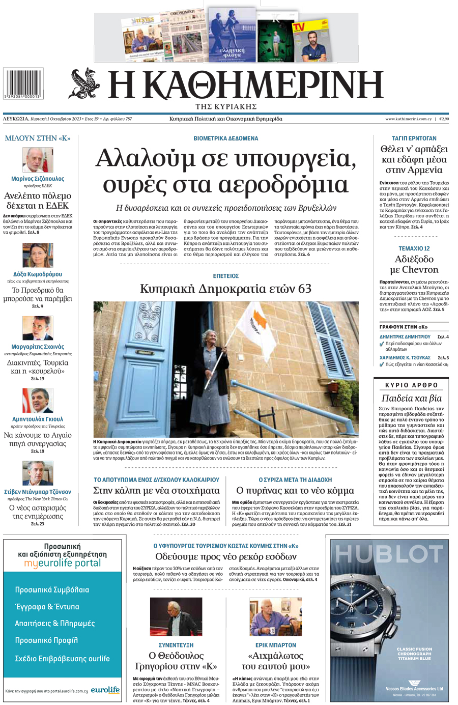 Διαβάστε αυτή την Κυριακή αποκλειστικά στην «Καθημερινή». Οι έλεγχοι των βιομετρικών δεδομένων, η εσωτερική ασφάλεια και το μεταναστευτικό, πώς η Κύπρος έμενε πίσω από την Ευρώπη. Αποκαλυπτικό ρεπορτάζ.