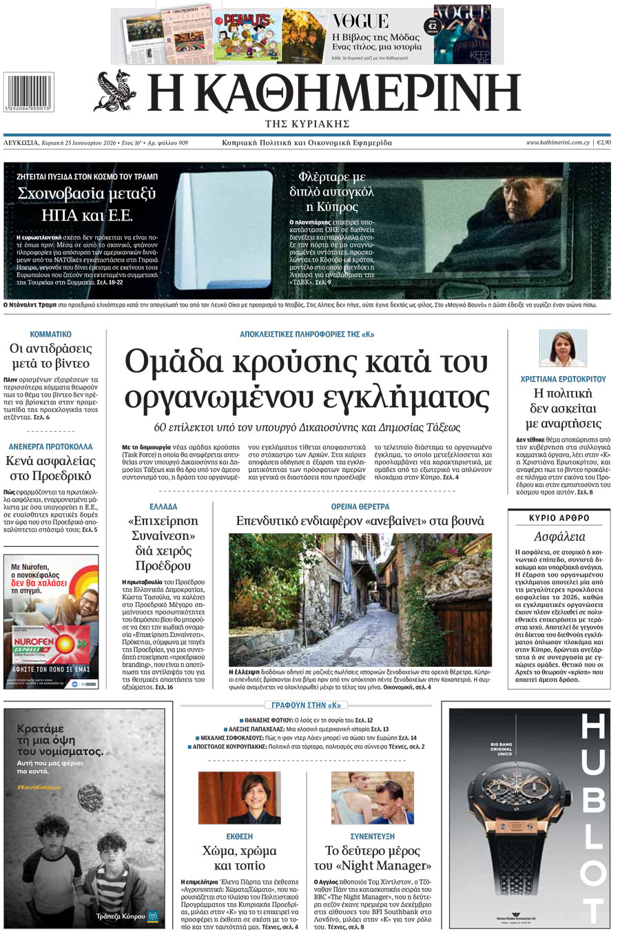 Μαζί ημερολόγιο Peanuts 2026, Vogue Ιανουαρίου και περιοδικό «Κ».