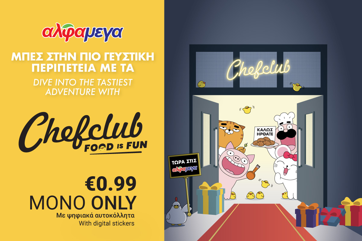 Το διεθνώς δημοφιλές μαγειρικό brand έχει καθιερωθεί ως σημείο αναφοράς για τη μαγειρική με φαντασία, προτείνοντας προϊόντα που συνδυάζουν την ποιότητα, τη δημιουργικότητα και την χαρά του μαγειρέματος. Η Chefclub κάνει την μαγειρική …παιχνίδι, εμπνέοντας μικρούς και μεγάλους να πειραματιστούν στην κουζίνα, μέσα από εύκολες, γευστικές και πρωτότυπες συνταγές. Η νέα, λοιπόν, προσφορά των Υπεραγορών Αλφαμέγα υπόσχεται να μετατρέψει τη μαγειρική σε μια δημιουργική και διασκεδαστική εμπειρία για όλη την οικογένεια.