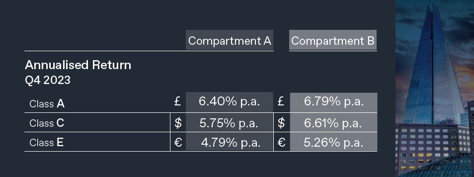 Παράλληλα, το νεοσύστατο Επενδυτικό Τμήμα B παρουσιάζει μια παρόμοια ανοδική τάση στις αποδόσεις του. Το νέο αυτό τμήμα εστιάζει σε δανειοδοτήσεις με εξασφάλιση εμπορικά ακίνητα στο κεντρικό Λονδίνο. Οι επενδυτές του μπορούν να αναμένουν ετήσιες αποδόσεις στοχοθετημένες άνω του 6% (GBP), 5% (EUR) και 6% (USD).