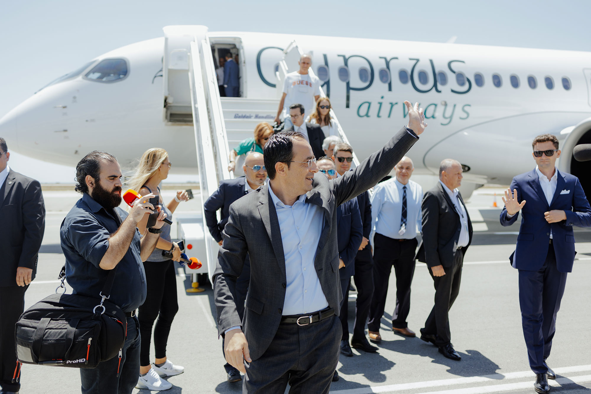 Σε ερώτηση δημοσιογράφου εάν θα ταξιδέψει με το νέο αεροσκάφος, ο Πρόεδρος Χριστοδουλίδης απάντησε φυσικά και σημείωσε πως «πριν λίγες μέρες είχε μεταβεί με εμπορική πτήση στις Βρυξέλλες και επέστρεψε με εμπορική πτήση από τις Βρυξέλλες και αντιλαμβάνεστε είπε πως μια πόλη με την οποία δεν έχει η Κύπρος απευθείας πτήσεις και υπάρχει αυτή η μεγάλη ανάγκη όχι μόνο για τους κρατικούς αξιωματούχους και τους δημόσιους λειτουργούς». Σημείωσε πως έρχεται και η Προεδρία της Κύπρου του Συμβουλίου της Ευρωπαϊκής Ενωσης το πρώτο εξάμηνο του 2026, «οι Βρυξέλλες είναι μια πόλη που πρέπει να δούμε πώς αντιμετωπίζουμε αυτό το πρόβλημα που δεν υπάρχουν απευθείας πτήσεις».