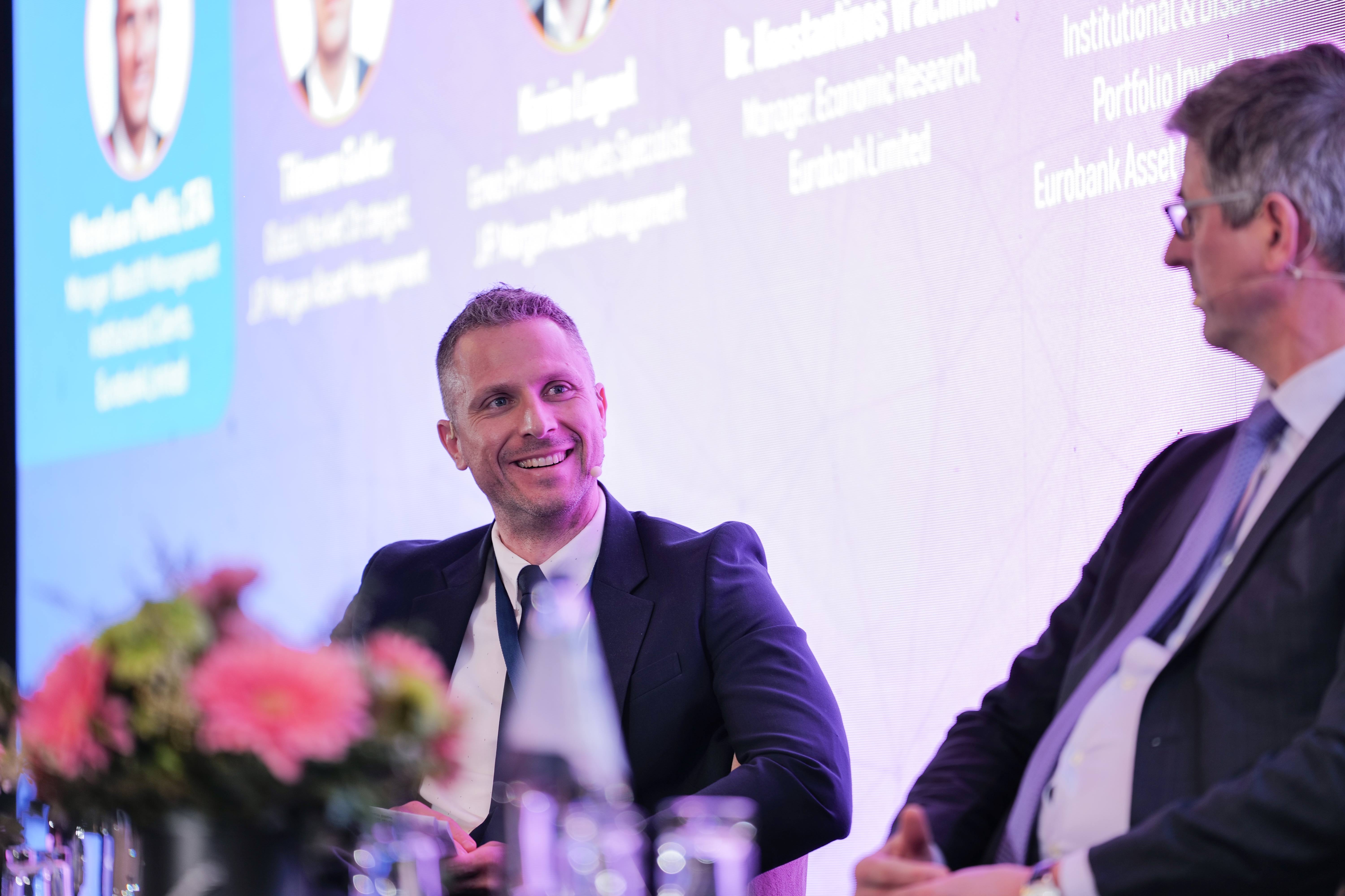 Σε πάνελ συζήτησης που συντόνισε ο Μενέλαος Πουλλής, CFA, Manager Wealth Management – Institutional Clients της Eurobank, εξετάστηκαν οι προοπτικές της παγκόσμιας και της κυπριακής οικονομίας, καθώς και οι τελευταίες εξελίξεις στις εναλλακτικές επενδύσεις, με τη συμμετοχή διακεκριμένων ομιλητών από τη J.P. Morgan Asset Management και τη Eurobank. Κατά τη διάρκεια της συζήτησης ο κ. Πουλλής ανέδειξε κρίσιμα ζητήματα που επηρεάζουν το σημερινό επενδυτικό περιβάλλον, όπως οι πολιτικές των Κεντρικών Τραπεζών, ο αντίκτυπος του πληθωρισμού, οι δημοσιονομικές πολιτικές και οι κρατικές δαπάνες, η πορεία του κυπριακού δημόσιου χρέους σε σχέση με το ΑΕΠ, οι ρυθμοί οικονομικής ανάπτυξης, καθώς και ο ρόλος των εναλλακτικών επενδύσεων στη βελτιστοποίηση της απόδοσης και της διαφοροποίησης των επενδυτικών χαρτοφυλακίων.