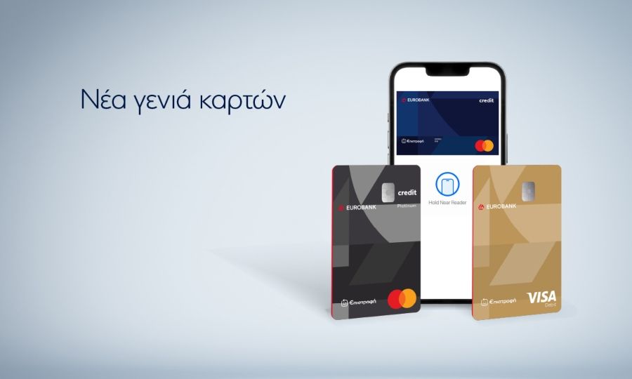 Η τραπεζική εμπειρία επαναπροσδιορίζεται και η Eurobank, στο πλαίσιο της συνεχούς αναβάθμισης των προϊόντων της, παρουσιάζει τη νέα γενιά καρτών, εγκαινιάζοντας μια ουσιαστική ανανέωση που συνδυάζει σύγχρονο σχεδιασμό, περιβαλλοντική υπευθυνότητα και προστιθέμενη αξία για τον πελάτη.