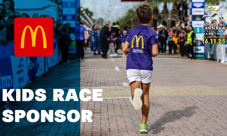 Η McDonald’s™ Κύπρου συνεχίζει να στηρίζει τον αθλητισμό, ανανεώνοντας για άλλη μια χρονιά τη συνεργασία της με τον Radisson Blu Διεθνή Μαραθώνιο Λάρνακας μέσω του McDonald’s™ Kids Race 1 χλμ.. Με αυτή την πρωτοβουλία, η McDonald’s™ Κύπρου δίνει στα παιδιά την ευκαιρία να ζήσουν την εμπειρία του αγώνα και να μάθουν εμπράκτως τις αξίες του ευ αγωνίζεσθαι.