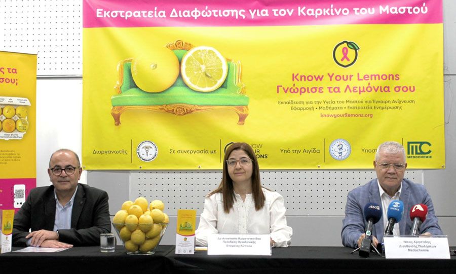 Αυτή η εικόνα έφτασε σήμερα και στην Κύπρο, μέσα από την εκστρατεία «Know Your Lemons – Γνώρισε τα Λεμόνια σου», η οποία παρουσιάστηκε σε συνέντευξη Τύπου που διοργάνωσε η Ογκολογική Εταιρεία Κύπρου (ΟΕΚ) στη Δημοσιογραφική Εστία, στο πλαίσιο του Διεθνούς Μήνα Ενημέρωσης και Ευαισθητοποίησης για τον Καρκίνο του Μαστού.