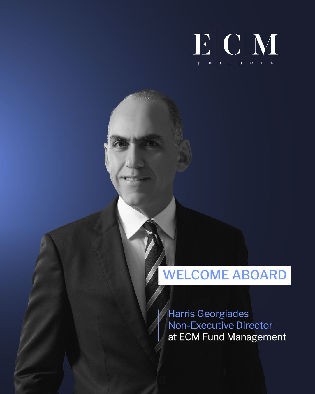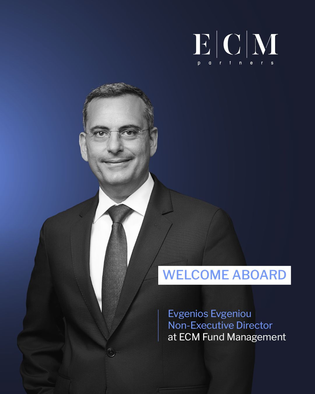 Σύμφωνα με επίσημη ανακοίνωση της ECM Partners, που εντάσσεται η ECM Fund Management, καλωσόρισε τον κ. Χάρη Γεωργιάδη, πρώην Υπουργό Οικονομικών της Κυπριακής Δημοκρατίας, και τον Διευθύνων Σύμβουλος της PwC Κύπρου από το 2012 έως το 2021, κ. Ευγένιο Ευγενίου.