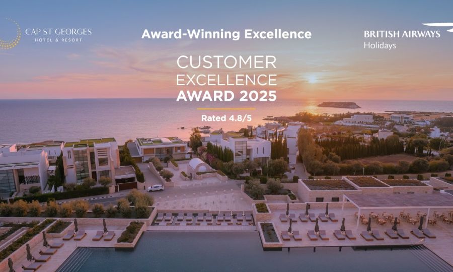 Το Cap St Georges Hotel & Resort τιμήθηκε με το British Airways Holidays Customer Excellence Award για το 2025, αναγνωρίζοντας την εξαιρετική ποιότητα υπηρεσιών, τις εγκαταστάσεις και την εμπειρία των επισκεπτών. Η διεθνής αυτή διάκριση κατατάσσει το Cap St Georges ανάμεσα στα κορυφαία ξενοδοχεία παγκοσμίως, βάσει επαληθευμένων αξιολογήσεων πελατών που συλλέχθηκαν από τη British Airways Holidays, σε συνεργασία με τη Feefo, τη μεγαλύτερη διεθνή πλατφόρμα επαληθευμένων αξιολογήσεων. Οι επισκέπτες αξιολόγησαν τη διαμονή τους σε βασικούς παράγοντες όπως η τοποθεσία, η εξυπηρέτηση, η καθαριότητα και η ποιότητα ύπνου, ενώ παρείχαν συνολική βαθμολογία από το ένα έως το πέντε. Το Cap St Georges πέτυχε εντυπωσιακή συνολική βαθμολογία 4,8/5.