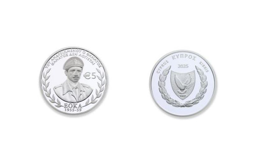 Η Κεντρική Τράπεζα της Κύπρου προχώρησε στην έκδοση αργυρού συλλεκτικού κέρματος, ονομαστικής αξίας €5 σε υποδειγματική κατάσταση, με την ευκαιρία της επετείου για τα 70 χρόνια από την έναρξη του απελευθερωτικού αγώνα της ΕΟΚΑ 1955-59.