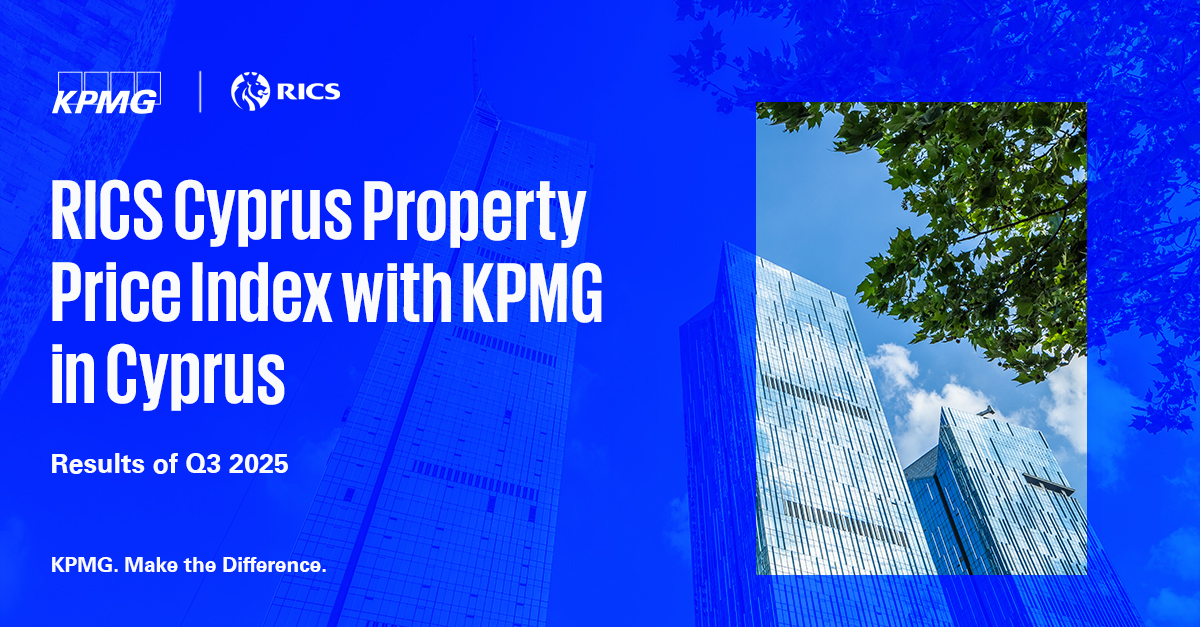 Η KPMG Κύπρου ανακοινώνει ότι έχουν δημοσιευθεί τα αποτελέσματα του Δείκτη Αξιών Ακινήτων “RICS Cyprus Property Price Index with KPMG in Cyprus” για το τριτο τρίμηνο του 2025.