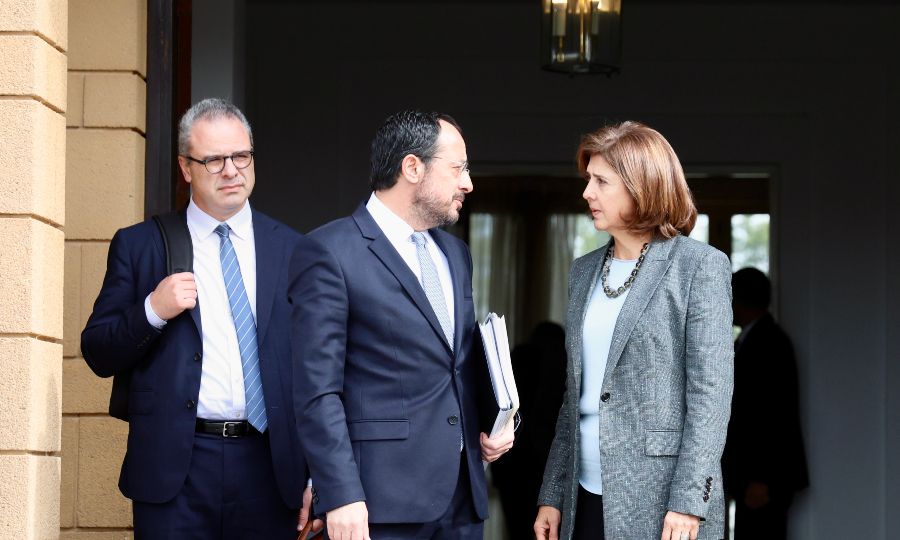 Επιβεβαίωση της βάσης λύσης του Κυπριακού, καταγραφή των συγκλίσεων για την εσωτερική και την εξωτερική πτυχή από τα ΗΕ, σύγκληση επίσημης διευρυμένης διάσκεψης στη βάση των συγκλίσεων, επανέναρξη των συνομιλιών και ανακοίνωση εκεί της διάνοιξης 4 νέων σημείων διέλευσης περιλαμβάνει η πρόταση 5 σημείων που κατέθεσε στην σημερινή συνάντηση των δύο ηγετών με την Προσωπική Απεσταλμένη του ΓΓ του ΟΗΕ, Μαρία Άνχελα Ολγκίν, ο Πρόεδρος της Δημοκρατίας, Νίκος Χριστοδουλίδης.