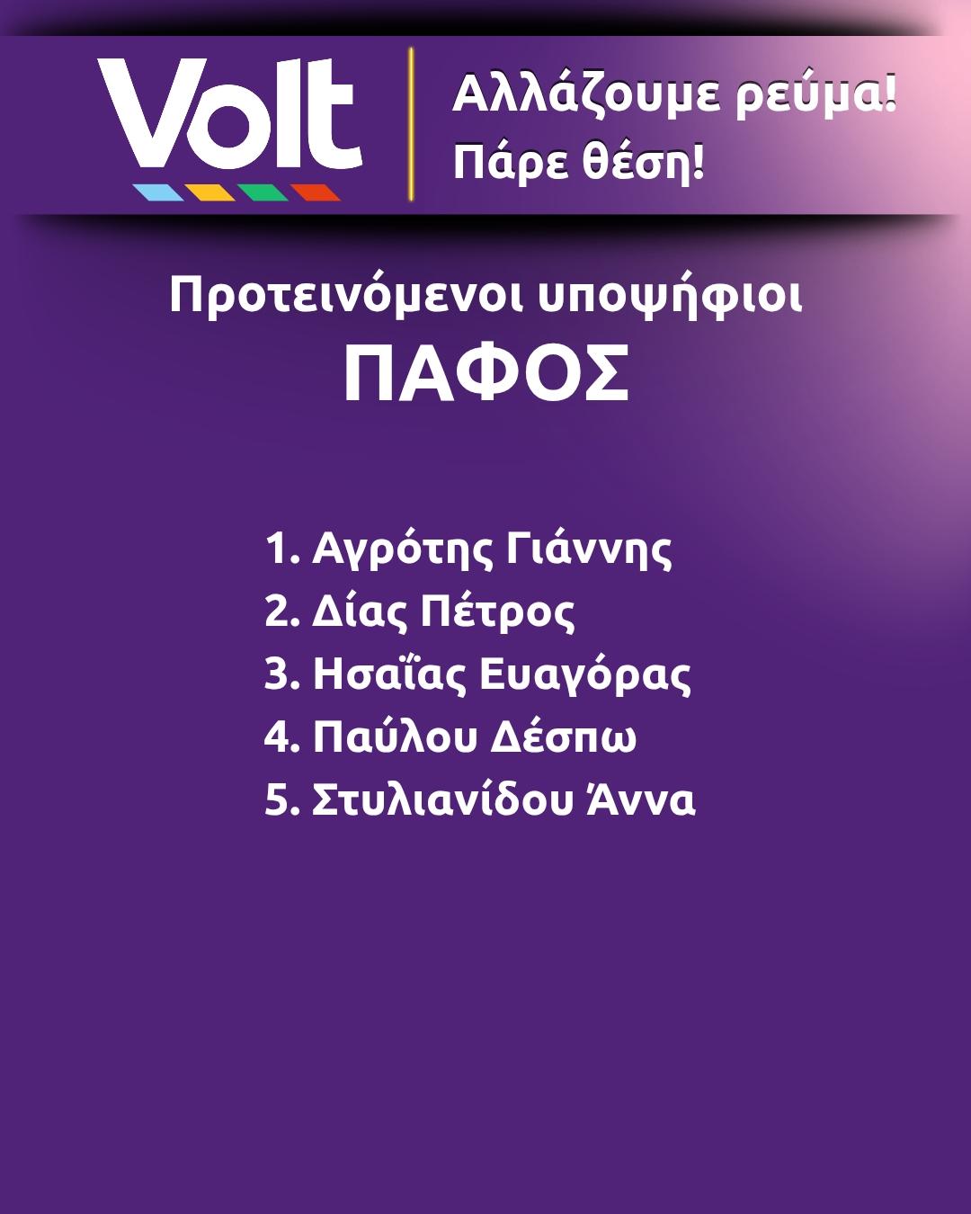 Την πρόταση του για το ψηφοδέλτιο των Βουλευτικών Εκλογών του Μαΐου 2026, ανακοινώνει το Πολιτικό Συμβούλιο του Volt. Όπως αναφέρει σε ανακοίνωση του, "πενήντα έξι πολίτες ενώνουν τις δυνάμεις τους με μια κοινή αποστολή να ενισχύσουν τη Δημοκρατία και να καταστήσουν τη Βουλή ουσιαστικό μηχανισμό ελέγχου, διαφάνειας και αποτελεσματικότητας"