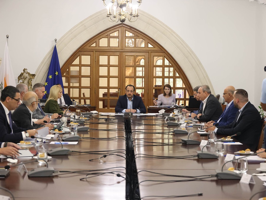 Ο Πρόεδρος της Δημοκρατίας κ. Νίκος Χριστοδουλίδης προήδρευσε σήμερα, στο Προεδρικό Μέγαρο, σύσκεψης του Εθνικού Συμβουλίου.Μετά τη σύσκεψη, ο Κυβερνητικός Εκπρόσωπος κ. Κωνσταντίνος Λετυμπιώτης δήλωσε στους δημοσιογράφους ότι «ο Πρόεδρος της Δημοκρατίας κατ΄αρχάς ενημέρωσε την πολιτική ηγεσία του τόπου για τις τελευταίες εξελίξεις στο Κυπριακό, μετά και την τελευταία συνάντηση του με την προσωπική απεσταλμένη του ΓΓ των ΗΕ κα Ολγκίν στις Βρυξέλλες, αφού προηγήθηκαν δύο συναντήσεις τους στην Κύπρο και μετά και τη συνάντηση του Προέδρου με τον ΓΓ των ΗΕ στην Ιορδανία.