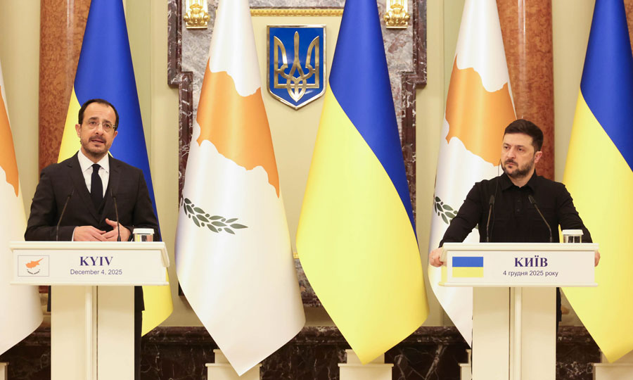 (…) Και είμαι σήμερα εδώ, όχι μόνο για να εκφράσω την αλληλεγγύη και συμπαράσταση της Κύπρου αλλά και για να τιμήσω προσωπικά το παράδειγμα ανθεκτικότητας του ουκρανικού λαού και που ο ίδιος ο Πρόεδρος δείχνει ως ηγέτης της χώρας, απέναντι σε μια βάναυση και απρόκλητη εισβολή. Από την κυβέρνηση μέχρι τον τελευταίο πολίτη, η Ουκρανία παραμένει ενωμένη σε έναν αγώνα που δεν αφορά μόνο την ίδια αλλά και την υπεράσπιση οικουμενικών αρχών και αξιών που ως επερχόμενη Προεδρία του Συμβουλίου της ΕΕ θα κάνουμε ό,τι είναι δυνατόν για να προωθήσουμε και να προασπίσουμε. Είμαι σήμερα εδώ για να επαναλάβω δημόσια ότι η Κύπρος, που γνωρίζει από πρώτο χέρι τι σημαίνει εισβολή και κατοχή, τί σημαίνει πρόσφυγες, αγνοούμενοι, καταπάτηση βασικών ανθρωπίνων δικαιωμάτων, στέκεται στο πλευρό της Ουκρανίας, στη σωστή πλευρά της ιστορίας και θα συνεχίσει να το πράττει με συνέπεια, αξιοπιστία και ξεκάθαρη πολιτική βούληση. Με τον Πρόεδρο Ζελένσκι πέραν από τις συζητήσεις για τις διμερείς μας σχέσεις και τις προοπτικές που υπάρχουν για περαιτέρω εμβάθυνση τους συζητήσαμε θέματα που αφορούν την επερχόμενη Προεδρία του Συμβουλίου της ΕΕ. Κοινή μας βούληση για τις διμερείς μας σχέσεις είναι να εμβαθύνουμε και να διευρύνουμε τη συνεργασία μας, αξιοποιώντας και την πολυάριθμη ουκρανική κοινότητα στην Κύπρο, που προϋπήρχε της ρωσικής εισβολής. Μετά τη ρωσική εισβολή φιλοξενούμε 25 χιλιάδες Ουκρανούς πρόσφυγες, ένας σημαντικός αριθμός λαμβάνοντας υπόψη τον πληθυσμό της Κύπρου. Με τον Πρόεδρο Ζελένσκυ είχαμε επίσης μια ειλικρινή συζήτηση, με ενημέρωσε ο Πρόεδρος, για το ότι ως αποτέλεσμα της συνεχιζόμενης ρωσικής εισβολής, για τις σοβαρές επιπτώσεις αυτης της εξέλιξης, ανταλλάξαμε απόψεις για τις διεθνείς προσπάθειες για επίτευξη ειρηνευτικής συμφωνίας. Σε αυτό το πλαίσιο, υπογράμμισα την ξεκάθαρη θέση της Κυπριακής Δημοκρατίας, θέση που αντικατοπτρίζει και τη θέση της ΕΕ, πως κάθε ειρηνευτική προσπάθεια και συμφωνία πρέπει να στηρίζεται στις αρχές του Χάρτη των Ηνωμένων Εθνών και στον απόλυτο σεβασμό της κυριαρχίας και της εδαφικής ακεραιότητας της Ουκρανίας» κατέληξε ο ΠτΔ.