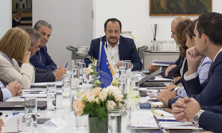 Ο Πρόεδρος της Δημοκρατίας κ. Νίκος Χριστοδουλίδης προήδρευσε σήμερα το απόγευμα, στο Προεδρικό Μέγαρο, ευρείας σύσκεψης με τις Οργανώσεις ΠΕΟ, ΣΕΚ, ΠΑΣΥΔΥ, ΔΕΟΚ, ΟΕΛΜΕΚ, ΟΛΤΕΚ, ΠΟΕΔ, ΠΟΠ, ΠΟΠΟ, Κυπριακό Σύνδεσμο Καταναλωτών, Παγκύπρια Ένωση Καταναλωτών και Ποιότητας Ζωής, ΕΚΥΣΥ, ΠΑΣΥΣΣΕΚ, με θέμα τις προτάσεις μέτρων για στήριξη της κοινωνίας.