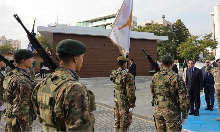 Απευθυνόμενος στον Πρόεδρο της Δημοκρατίας, ο Αρχηγός της Εθνικής Φρουράς τόνισε ότι το προσωπικό της αυτή τη στιγμή είναι σε ετοιμότητα, στις επάλξεις για να προσφέρει ασφάλεια στην κυπριακή κοινωνία. Καταλήγοντας, ευχαρίστησε τον Πρόεδρο Αναστασιάδη για την παρουσία του, η οποία αναδεικνύει και το δικό του ενδιαφέρον προσωπικά, αλλά και της πολιτείας.