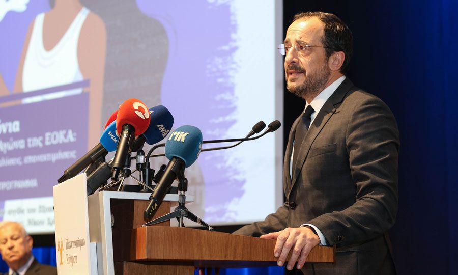 Σε ομιλία του σε Επιστημονικό Συνέδριο που διοργάνωσε το Ίδρυμα Απελευθερωτικού Αγώνα 1955-1959, σε συνεργασία με το Σ.Ι.Μ.Α.Ε. και τους Συνδέσμους Αγωνιστών, με την ευκαιρία της συμπλήρωσης 70 χρόνων από την έναρξη του Αγώνα της ΕΟΚΑ ο Πρόεδρος προέβη σε μια ανάλυση από τις διαπραγματεύσεις Μακαρίου - Χάρντινγκ στις Συμφωνίες της Ανεξαρτησίας, μιλώντας για τη διπλωματική ιστορία του Κυπριακού την περίοδο 1955-1959.