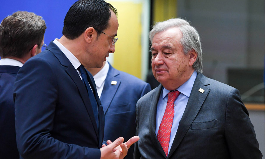 Ο Πρόεδρος της Δημοκρατίας είχε την ευκαιρία να δει για λίγα λεπτά για μια χειραψία και για φωτογράφηση τον Γενικό Γραμματέα του ΟΗΕ, Αντόνιο Γκουτέρες, που βρίσκεται στις Βρυξέλλες για τις εργασίες του Συμβουλίου με σημαντική ατζέντα που αφορά σε «καυτές πατάτες» όπως το Ουκρανικό και το προσφυγικό-μεταναστευτικό -με έμφαση στην ουκρανική του διάσταση. Κατά την διάρκεια του Συμβουλίου ανέπτυξε εκτενώς την πρόταση του για ευρωπαϊκή διαμεσολάβηση ενώπιον των «26» ηγετών των κρατών της ΕΕ ενώ μεγάλης σημασίας για την συνέχεια κρίνονται και οι συζητήσεις με τον Γάλλο Πρόεδρο Μακρόν και τον Γερμανό καγκελάριο Σολτς -που αμφότεροι εν ευθέτω χρόνο θα προσκαλέσουν επίσημα τον ΠτΔ για επίσκεψη σε Παρίσι και Βερολίνο, εξέλιξη που συνδέεται με την ευόδωση της πρότασης για μεσολάβηση από την ΕΕ στο Κυπριακό (και που καλά ενημερωμένοι διπλωματικοί κύκλοι χαρακτηρίζουν στην «Κ» ως καταλυτική την στήριξη του γαλλογερμανικού άξονα στην επιδίωξη της Λευκωσίας). Ο ΓΓ του ΟΗΕ δεν κατόρθωσε τελικά να δει τον ΠτΔ στο περιθώριο της Συνόδου -όπως ανέφερε η «Κ» σε ρεπορτάζ της.