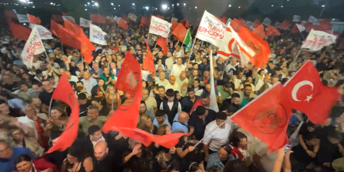 Πλήθος Τουρκοκυπρίων πανηγυρίζει τη νίκη του Ερχιουρμάν όπως καταγράφει live μετάδοση της Özgür Gazete