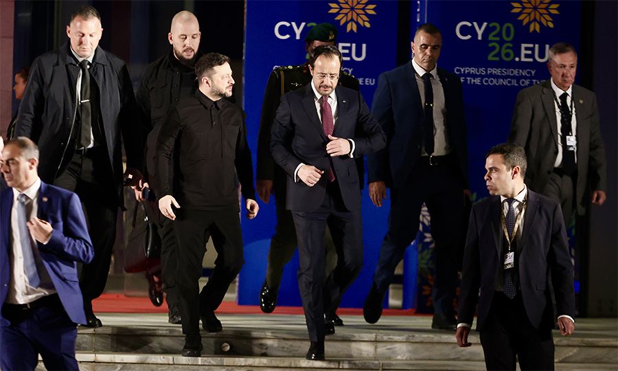 Κατά τη διάρκεια της τετραμερής συνάντησης για το Ουκρανικό στο Προεδρικό Μέγαρο μεταξύ του Προέδρου της Δημοκρατίας, της Προέδρου της Κομισιόν, του Προέδρου του Ευρωπαϊκού Συμβουλίου και του Προέδρου της Ουκρανίας, ο κύριος Χριστοδουλίδης τόνισε ότι «οι συζητήσεις μας επικεντρώθηκαν στις τελευταίες εξελίξεις, καθώς και στις κοινές προσπάθειες για την επίτευξη μιας δίκαιης, συνολικής και διαρκούς ειρήνης στην Ουκρανία, στη βάση του διεθνούς δικαίου». Από την πλευρά του ο Ουκρανός Πρόεδρος από το βήμα του ΘΟΚ, εξέφρασε την ελπίδα ότι ο πόλεμος θα τερματιστεί κατά τη διάρκεια της Κυπριακής Προεδρίας τονίζοντας ωστόσο ότι για να γίνει αυτό θα πρέπει να ασκηθεί πίεση στην Ρωσία. Ειδική αναφορά έκανε στις κυρώσεις που πρέπει να επιβληθούν αλλά και στο πρόγραμμα SAFE της Ε.Ε. Από τις δηλώσεις του κύριου Ζελένσκι δεν έλειψαν και οι συσχετισμοί μεταξύ του Κυπριακού και του Ουκρανικού, «για την Ουκρανία, αυτή η στιγμή είναι πολύ σημαντική – όπως ακριβώς και για την Κύπρο – ένα κράτος-μέλος που, δυστυχώς, παραμένει διαιρεμένο, αλλά δεσμευμένο στη διαρκή ειρήνη – και είναι πλήρως ισότιμο στην Ευρώπη», επισήμανε.