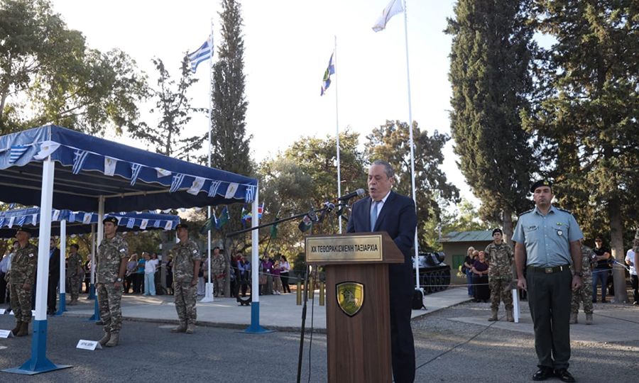 Η Εθνική Φρουρά, συνέχισε, «είναι και θα συνεχίσει να αποτελεί τον θεματοφύλακα της άμυνας και της ασφάλειας της Κυπριακής Δημοκρατίας, και τον πλέον αξιόπιστο παράγοντα αποτροπής απέναντι σε κάθε επιβουλή. Ως Υπουργείο Άμυνας θα συνεχίσουμε να ενισχύουμε την αποτρεπτική μας ισχύ, να βελτιώνουμε την επιχειρησιακή μας ικανότητα και να αναβαθμίζουμε την αμυντική μας θωράκιση» είπε.