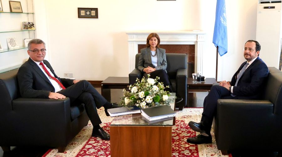 Σε εξέλιξη βρίσκεται η συνάντηση του Προέδρου της Δημοκρατίας, Νίκου Χριστοδουλίδη με τον Τουρκοκύπριο ηγέτη, Τουφάν Έρχιουρμαν στην παρουσία της προσωπικής απεσταλμένης του Γενικού Γραμματέα του ΟΗΕ Μαρία Άνχελα Ολγκίν.
