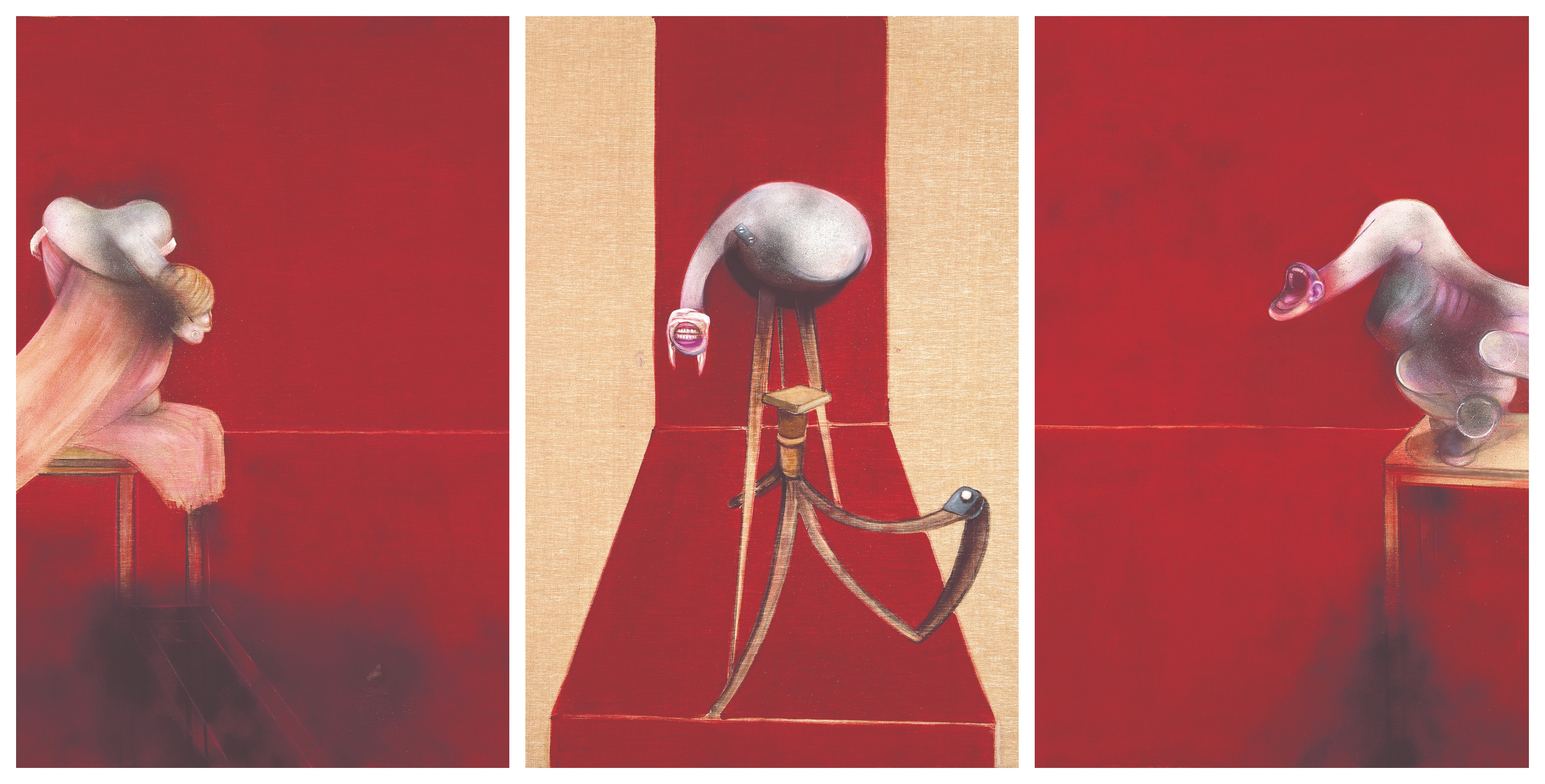 Δεύτερη Εκδοχή του Τρίπτυχου, 1988. 44 χρόνια μετά το αριστούργημα «Τρεις σπουδές για μορφές στο κάτω μέρος μιας Σταύρωσης» ολοκληρώνει τη δεύτερη εκδοχή. Τον εμπνέουν οι τρεις Ερινύες από την Ορέστεια του Αισχύλου.