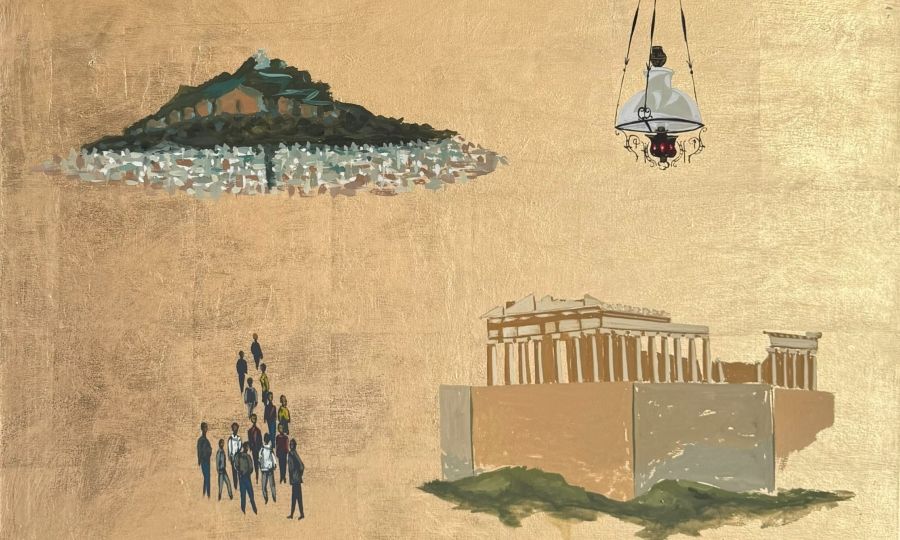 ΣΠΥΡΟΣ ΒΑΣΙΛΕΙΟΥ, Ακρυλικό με χρυσό σε καμβά, (συνοδεύετε με γκαραντί), 80 X 100 εκ.